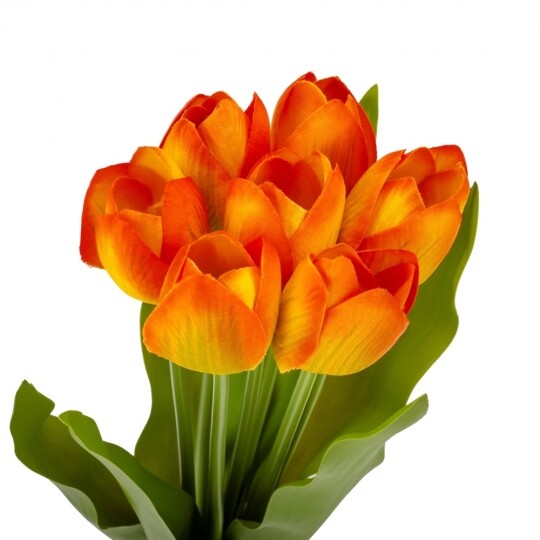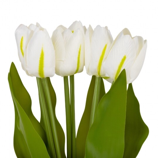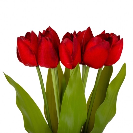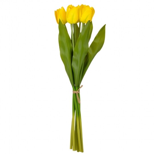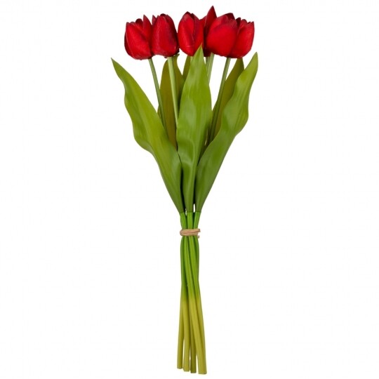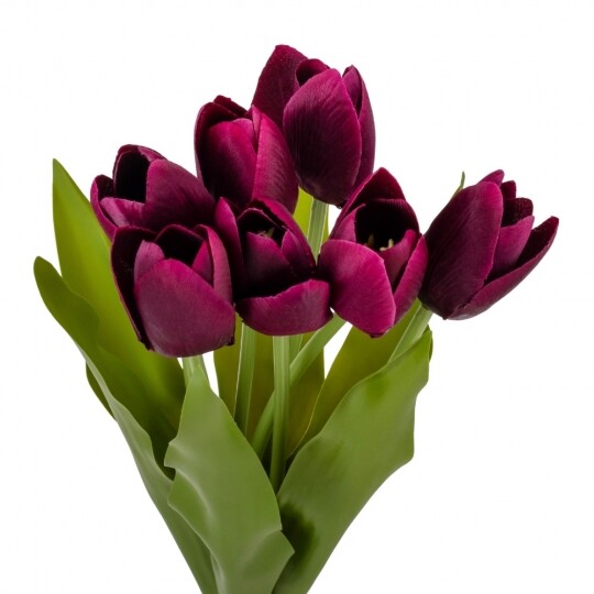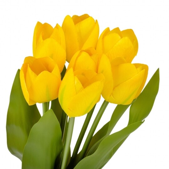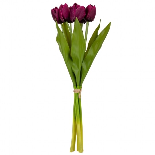 Букет з 7 тюльпанів. Висота букету - 40 см. Стебла та листя виготовлені з пластику, квіти з тканини. Букет тюльпанів - витончена композиція, що вражає своєю неповторною красою та реалістичністю, відтворюючи живі квіти з великою деталізацією. Такий букет є ідеальним варіантом для створення декоративних композицій, декорування святкових заходів, фотостудій, вітрин магазинів, кафе тощо! Букет залишиться свіжим та привабливим протягом тривалого часу без надмірного догляду.