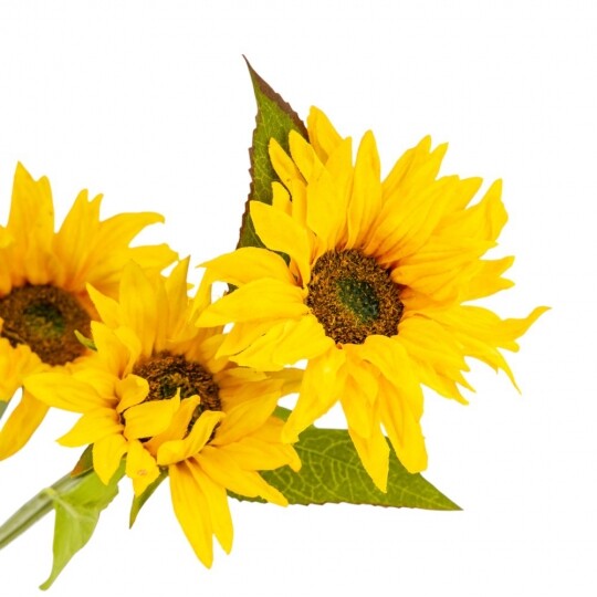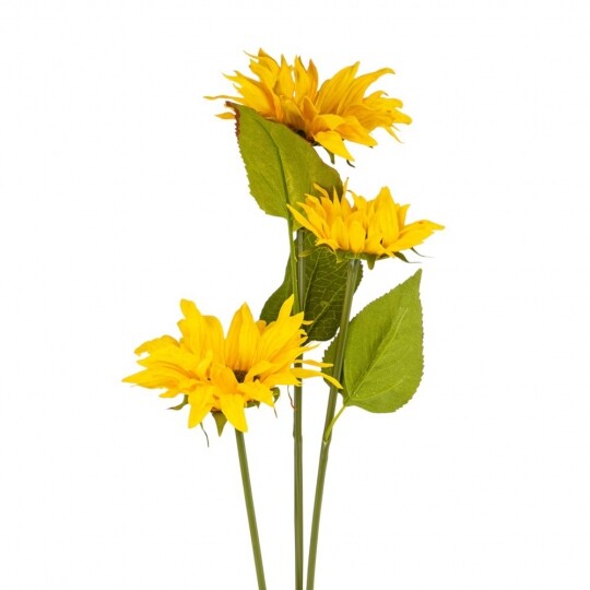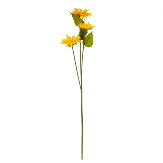 Висота - 77 см, діаметр - 12 см. Штучна гілка соняшника з трьома яскравими квітами стане чудовим доповненням до будь-якої композиції. Квіти та листя виготовлені з якісної тканини, що надає їм натурального вигляду, а стебла з гнучкого пластику дозволяють легко формувати бажану форму. Такий декоративний елемент додасть інтер’єру тепла та затишку, створюючи атмосферу літа у будь-яку пору року.