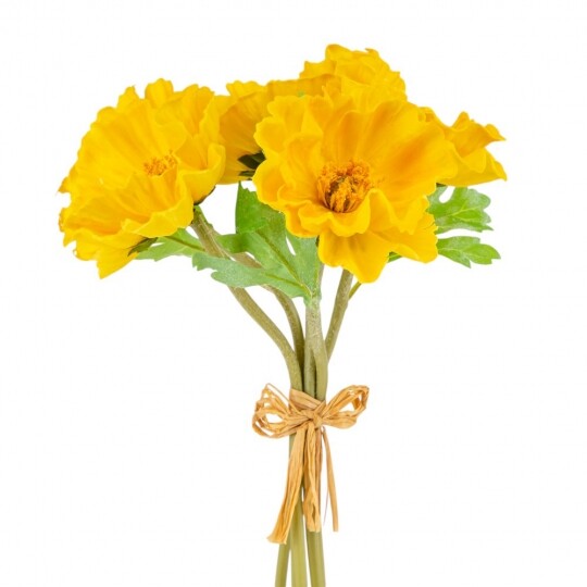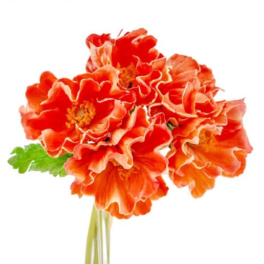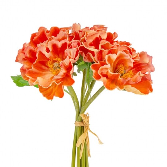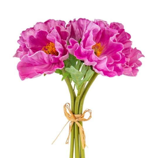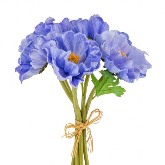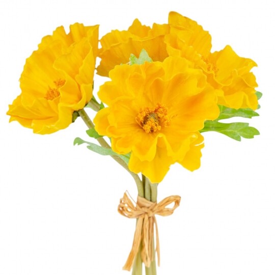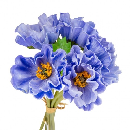 Маки з ніжним квітковим ароматом! Висота – 31 см, ширина букету - 18 см. Діаметр бутону - 9 см. В букеті 5 маків. Квіти виконані з латексу, листя - з тканини, стебла - з пластику. Стебла гнучкі. Цей штучний букет маків поєднує витонченість і природну красу, створюючи ефект свіжозрізаних квітів. Його ніжні пелюстки доповнюються витонченими листками, а композиція виглядає гармонійною та елегантною. Букет має легкий квітковий аромат, що додає йому ще більшої реалістичності. Ідеально підходить для декору інтер’єру, фотозон чи святкових композицій.