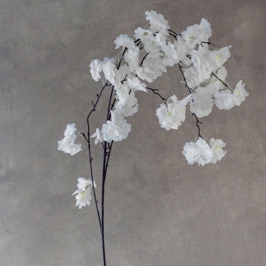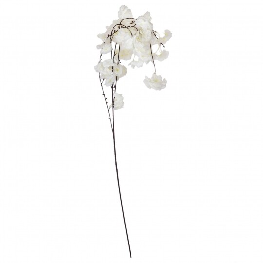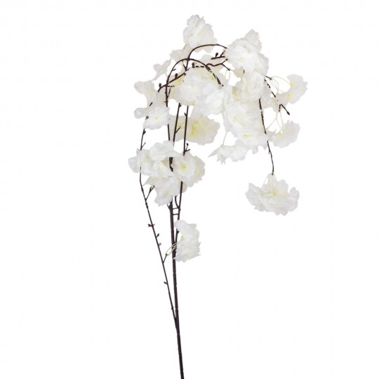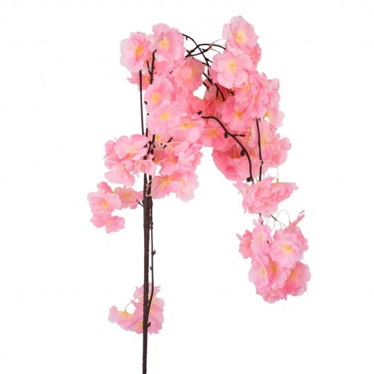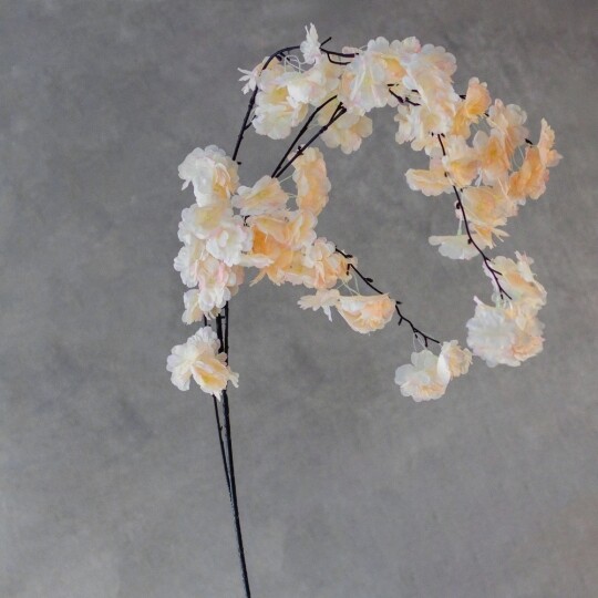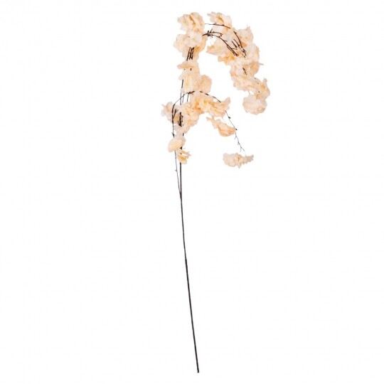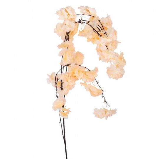 Висота – 130 см, діаметр квітки – 4 см. Штучна звисаюча гілка сакури з ніжними тканинними квітами створює легкий і романтичний ефект у декорі. Гнучке стебло дозволяє легко формувати композиції для арок, фотозон і святкових оформлень. Натуральний відтінок додає елегантності та гармонійно поєднується з будь-яким інтер’єром.