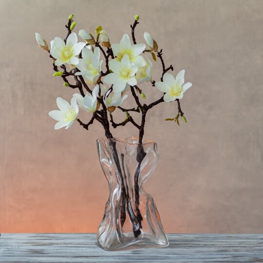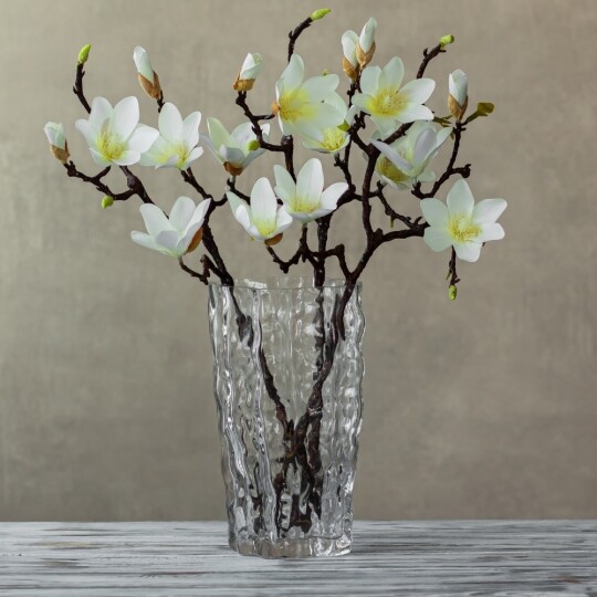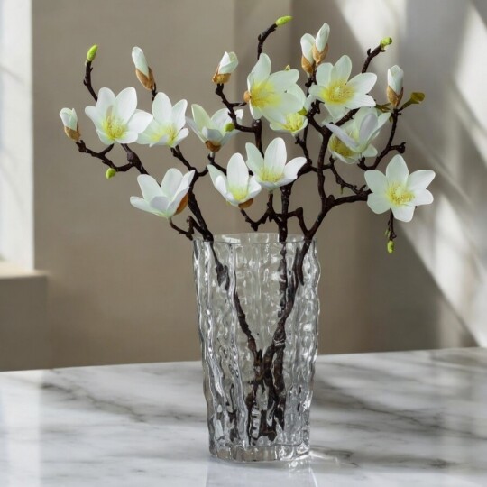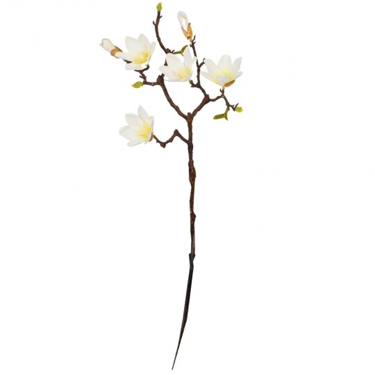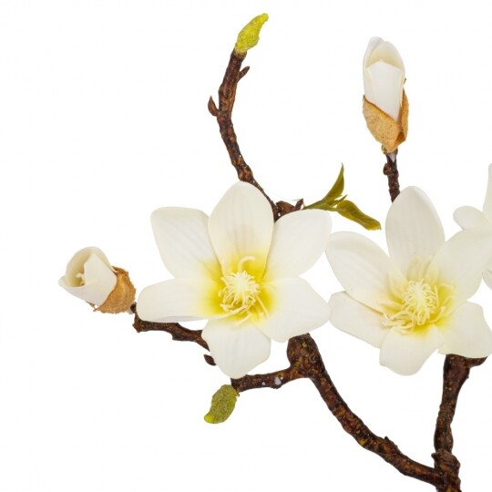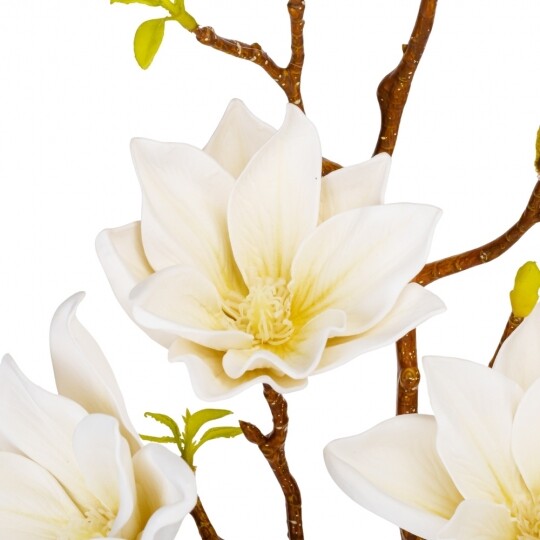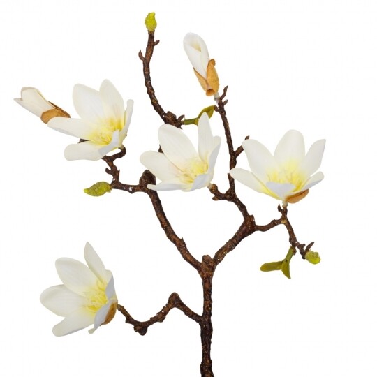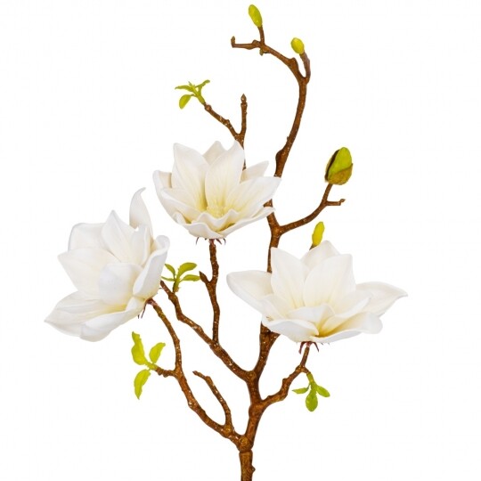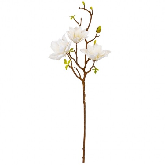 Висота - 77 см. Штучна магнолія - це реалістична імітація гілки живої магнолії, створена зі штучних матеріалів - фоамірану та пластику. Вона має деталізовану структуру, що імітує справжні гілочки, листя та квіти магнолії. Оригінального кольору, ця штучна гілка використовується як декоративний елемент у флористиці, дизайні інтер'єру або при оздобленні різноманітних заходів, додаючи натурального шарму та елегантності до простору.