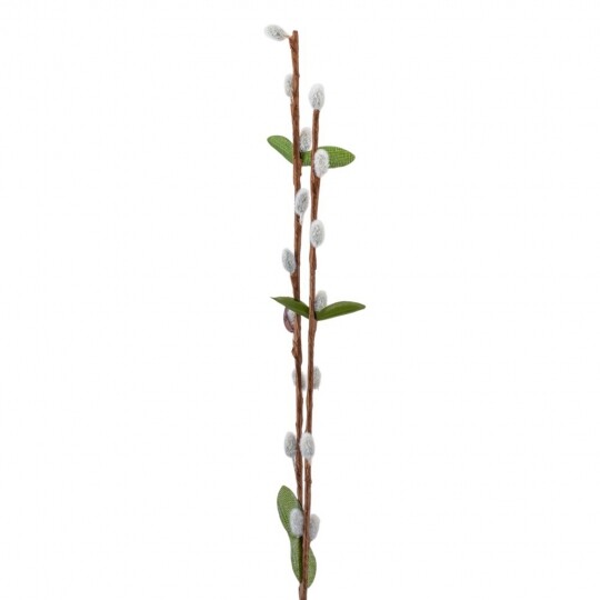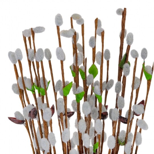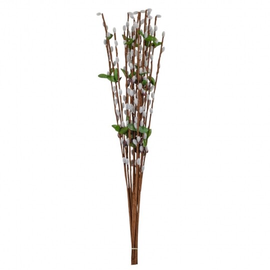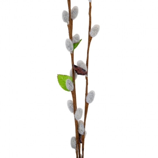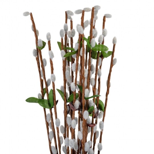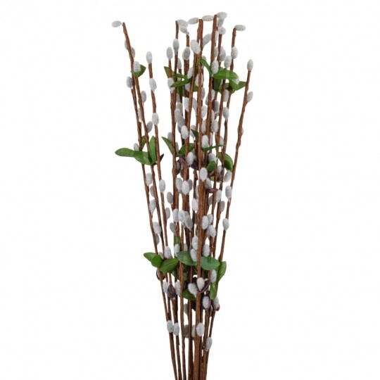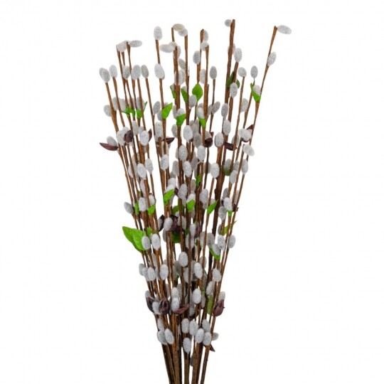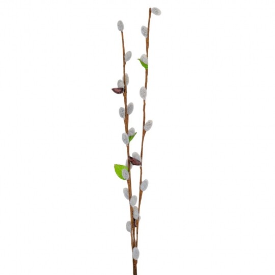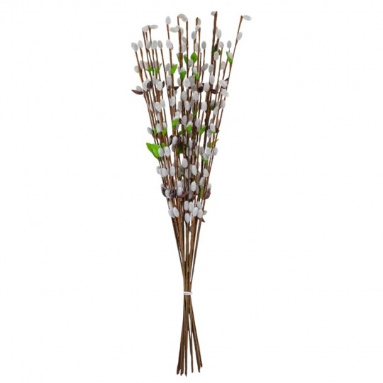 Висота - 65 см. Штучна гілка верби – це елегантний декор для весняних композицій, святкових оформлень та інтер'єру. У наборі 12 гілок, кожна з яких має реалістичний вигляд із пухнастими «котиками», зеленим листям та коричневими стеблами. Завдяки гнучкому матеріалу, гілки легко приймають бажану форму та гармонійно поєднуються з іншими декоративними елементами. Ідеально підходять для оформлення великодніх кошиків, ваз чи створення флористичних композицій.