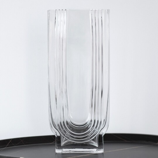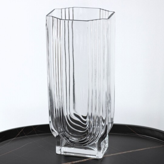 Висота - 24,5 см, Діаметр - 13 см. Довжина - 18 см.Ця скляна ваза є ідеальним доповненням для будь-якого інтер'єру, додаючи елегантності та простоти. Виготовлена з прозорого скла високої якості, вона відзначається чистими лініями і сучасним дизайном, що дозволяє їй вписатися в різноманітні стилі. Чистий, прозорий вигляд підкреслює красу будь-яких квітів або декоративних елементів. Гладка поверхня легко очищується і не втрачає свій блиск. Універсальний дизайн дозволяє вазі гармонійно вписатися в будь-який інтер'єр та стане ідеальним подарунком на новосілля, день народження, ювілей тощо.