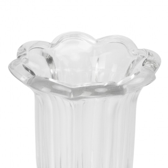 Висота - 24,5 см, Діаметр - 8 см. Довжина - 15 см. Ця скляна ваза є ідеальним доповненням для будь-якого інтер'єру, додаючи елегантності та простоти. Виготовлена з прозорого скла високої якості, вона відзначається чистими лініями і сучасним дизайном, що дозволяє їй вписатися в різноманітні стилі. Чистий, прозорий вигляд підкреслює красу будь-яких квітів або декоративних елементів. Гладка поверхня легко очищується і не втрачає свій блиск. Універсальний дизайн дозволяє вазі гармонійно вписатися в будь-який інтер'єр та стане ідеальним подарунком на новосілля, день народження, ювілей тощо.