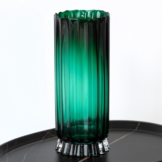 Висота - 29 см, Діаметр - 12 см. Ця скляна ваза є ідеальним доповненням для будь-якого інтер'єру, додаючи елегантності та простоти. Виготовлена з прозорого скла високої якості, вона відзначається чистими лініями і сучасним дизайном, що дозволяє їй вписатися в різноманітні стилі. Чистий, прозорий вигляд підкреслює красу будь-яких квітів або декоративних елементів. Гладка поверхня легко очищується і не втрачає свій блиск. Універсальний дизайн дозволяє вазі гармонійно вписатися в будь-який інтер'єр та стане ідеальним подарунком на новосілля, день народження, ювілей тощо.