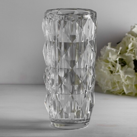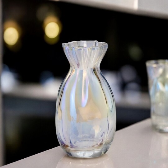 Висота - 21,5 см, Діаметр - 10 см. Ця скляна ваза є ідеальним доповненням для будь-якого інтер'єру, додаючи елегантності та простоти. Виготовлена з прозорого скла високої якості, вона відзначається чистими лініями і сучасним дизайном, що дозволяє їй вписатися в різноманітні стилі. Чистий, прозорий вигляд підкреслює красу будь-яких квітів або декоративних елементів. Гладка поверхня легко очищується і не втрачає свій блиск. Універсальний дизайн дозволяє вазі гармонійно вписатися в будь-який інтер'єр та стане ідеальним подарунком на новосілля, день народження, ювілей тощо.