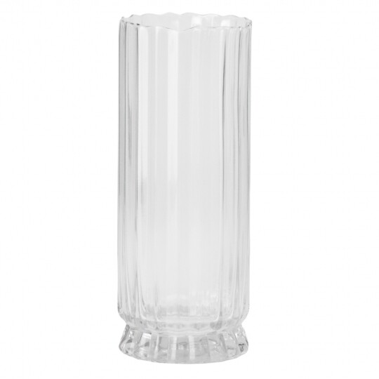 Висота - 24 см, Діаметр - 12 см. Ця скляна ваза є ідеальним доповненням для будь-якого інтер'єру, додаючи елегантності та простоти. Виготовлена з прозорого скла високої якості, вона відзначається чистими лініями і сучасним дизайном, що дозволяє їй вписатися в різноманітні стилі. Чистий, прозорий вигляд підкреслює красу будь-яких квітів або декоративних елементів. Гладка поверхня легко очищується і не втрачає свій блиск. Універсальний дизайн дозволяє вазі гармонійно вписатися в будь-який інтер'єр та стане ідеальним подарунком на новосілля, день народження, ювілей тощо.