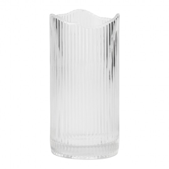 Висота - 20,5 см, Діаметр - 11 см. Ця скляна ваза є ідеальним доповненням для будь-якого інтер'єру, додаючи елегантності та простоти. Виготовлена з прозорого скла високої якості, вона відзначається чистими лініями і сучасним дизайном, що дозволяє їй вписатися в різноманітні стилі. Чистий, прозорий вигляд підкреслює красу будь-яких квітів або декоративних елементів. Гладка поверхня легко очищується і не втрачає свій блиск. Універсальний дизайн дозволяє вазі гармонійно вписатися в будь-який інтер'єр та стане ідеальним подарунком на новосілля, день народження, ювілей тощо.